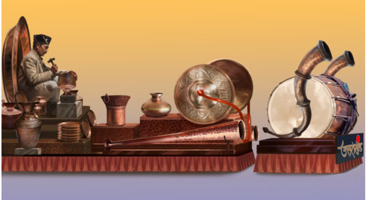 झांकी के अंतिम सेक्शन में तांबे के कारीगर की एक प्रभावशाली मूर्ति दिखाई गई है, जो हाथ से तांबे के बर्तन बनाते हुए दर्शायी गई है। कारीगर के चारों ओर सुसज्जित तांबे के बर्तन पीढ़ियों से चले आ रहे ज्ञान, कौशल और श्रम की गरिमा का प्रतीक हैं।